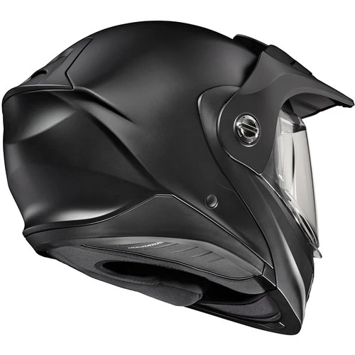 The EXO-AT960 can be used as a full-face ADV helmet with an external peak visor attached, or the peak visor can be removed for a more aerodynamic touring helmet. The oversized eye port is extremely wide for greater peripheral vision and downward visibility, and the modular chin bar can be conveniently flipped up.