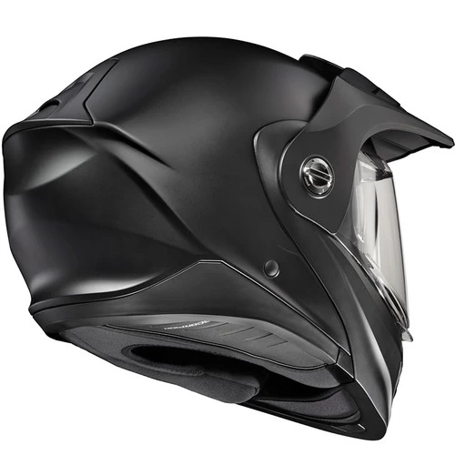The EXO-AT960 can be used as a full-face ADV helmet with an external peak visor attached, or the peak visor can be removed for a more aerodynamic touring helmet. The oversized eye port is extremely wide for greater peripheral vision and downward visibility, and the modular chin bar can be conveniently flipped up.