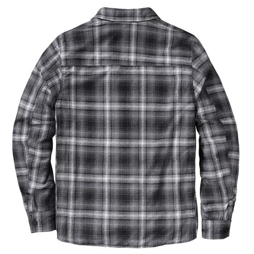 - Plaid flannel (186g) is made of 100% brushed cotton and is internally reinforced with abrasion resistant 600D polyester at the shoulders, elbows and back